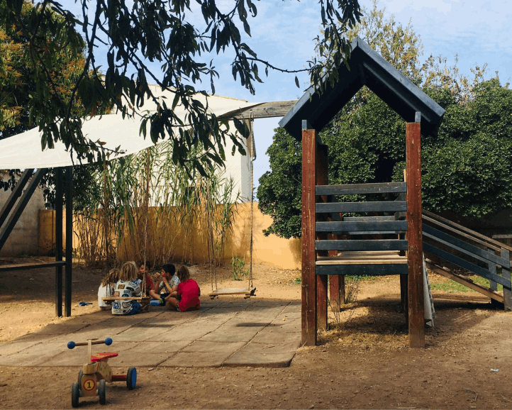D'estil mallorquí, la nostra caseta compta amb tres estances, a més d'un espai comú polivalent, un despatx i una cuina on cada dia feim el dinar seguint la dieta mediterrània, sana i equilibrada, i adaptat a les necessitats de cada família i petit/a (vegetarià, BLW, fàcil masticació,...)